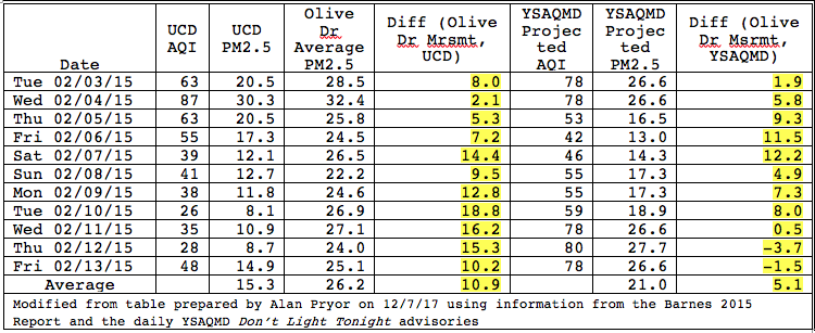 The data show that the PM 2.5 measurements at Olive Drive are consistently higher than measured by UCD & generally higher than measured by YSAQMD. The City should have called for more studies, at Nishi itself, to determine the levels of pollutants in the worse case scenario: weekend traffic combined with a bad air quality day in the region.