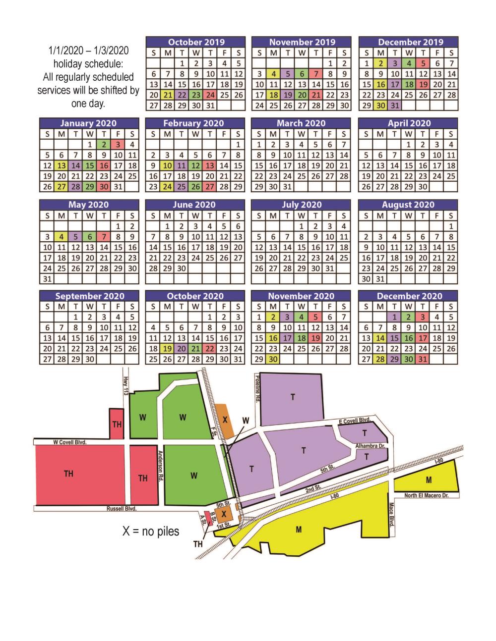Finally here is the new City schedule. Notice that there is no street pick up at all for March, April, June, July, August and September. The worst of yard waste and debris lingering in our streets is yet to come. During peak season there is pick up only every other week, so if a windstorm (as is common in Davis) happens in an off week the resulting yard waste and debris will linger for extended periods every time.