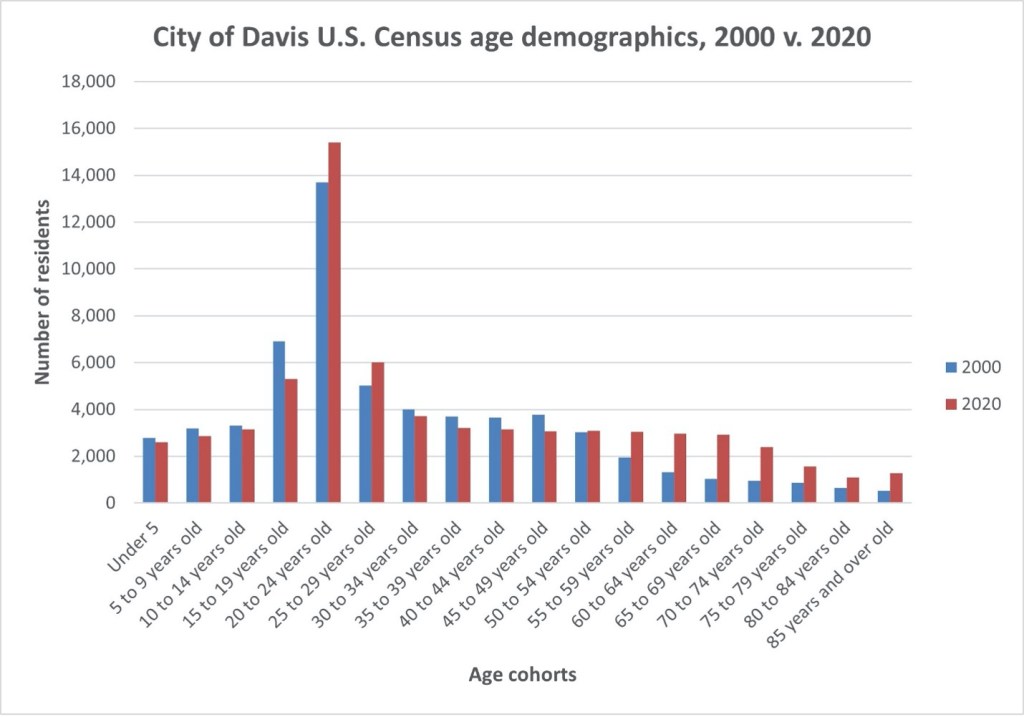City of Davis census data show a local declining young adult population