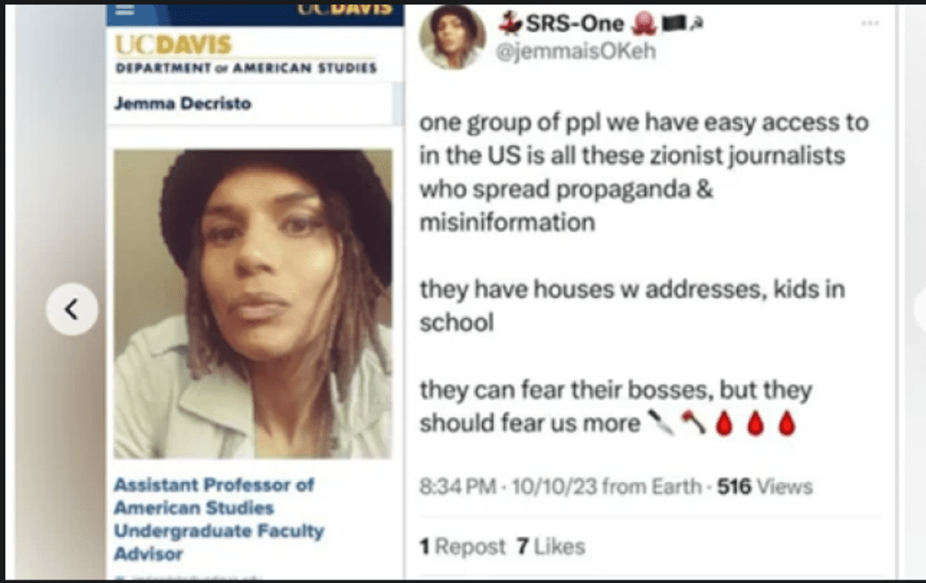 This context makes UC Davis’s handling of American Studies professor Jemma DeCristo’s now-deleted Oct. 10, 2023, social media post on X all the more alarming.